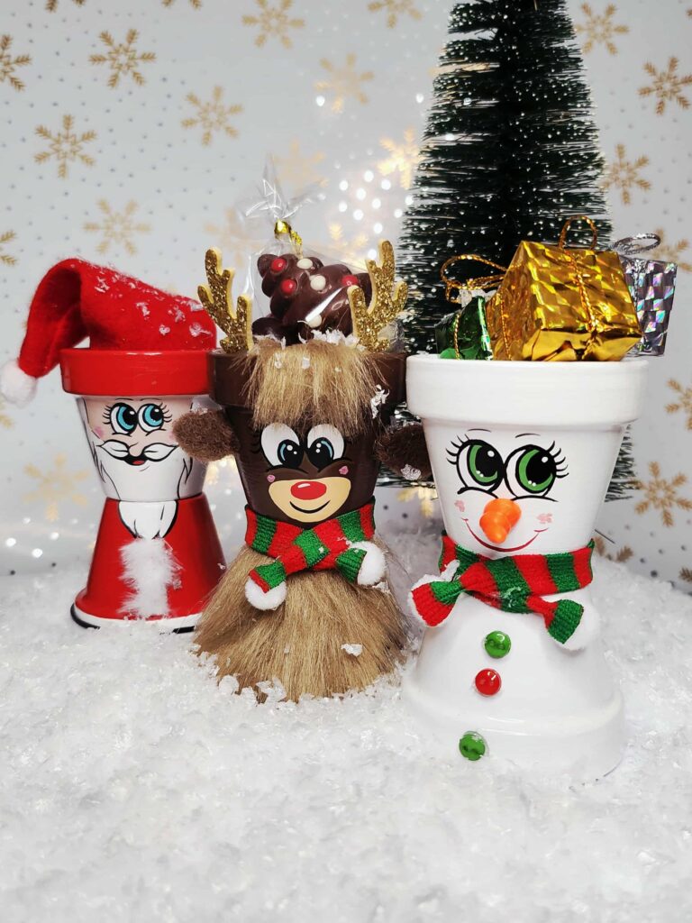 Le Père Noël, le Renne et le Bonhomme de neige — trois compagnons pleins de charme qui apportent joie et bonne humeur à votre décoration de fêtes.