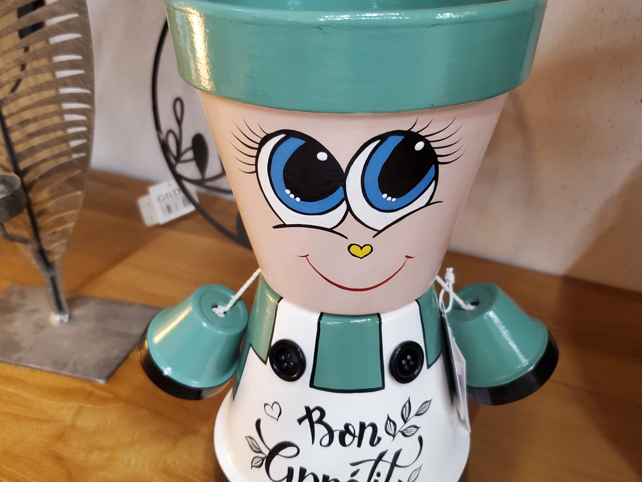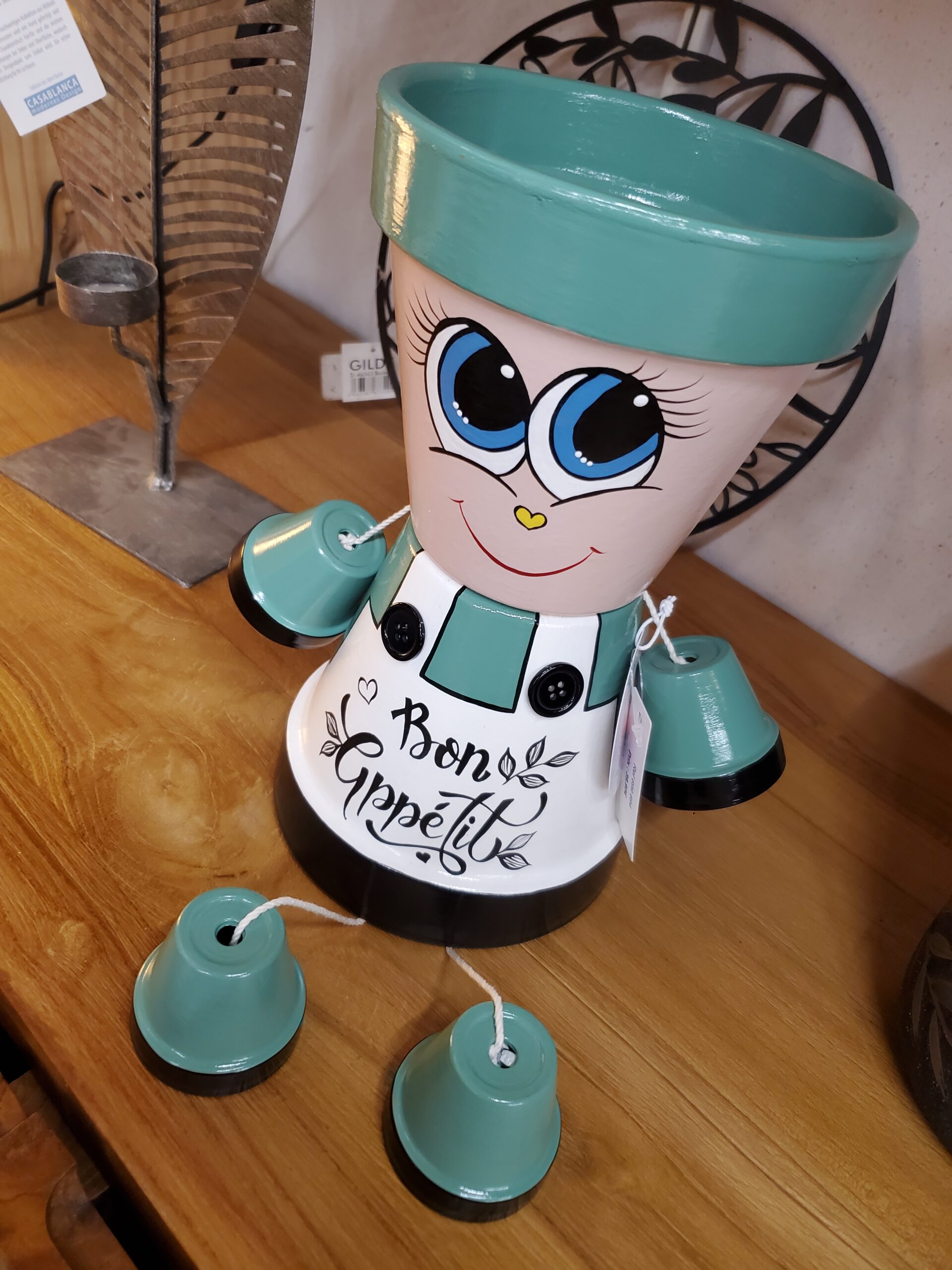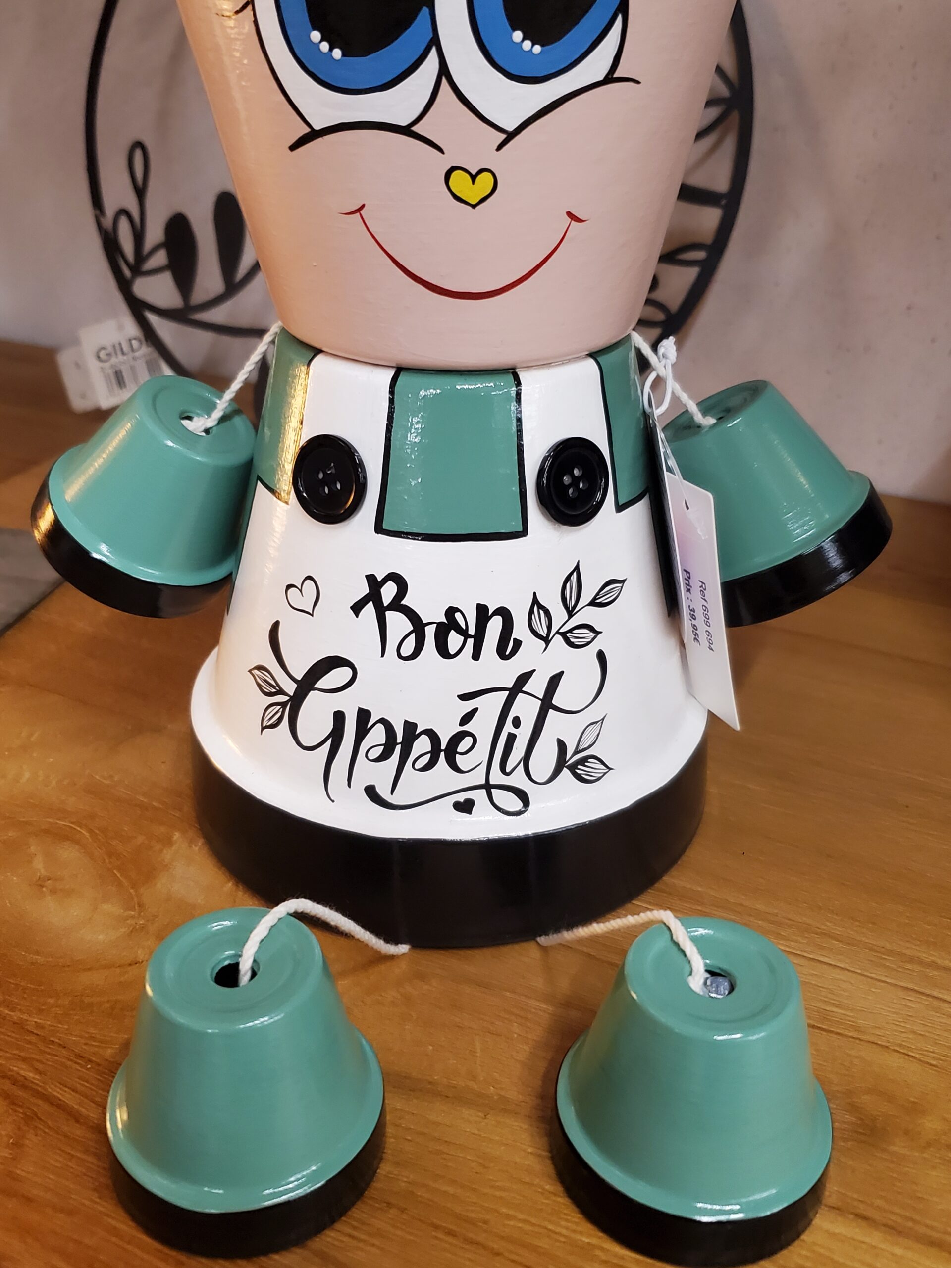 Ce personnage pot de fleurs, orné d’un visage expressif, apporte une touche ludique et colorée à votre décoration intérieure. Fabriqué à partir de pots en terre, il est à la fois durable et esthétique, idéal pour mettre en valeur vos plantes préférées. Son design unique et charmant en fait un excellent choix pour égayer n’importe quel espace, que ce soit en intérieur comme en extérieur.